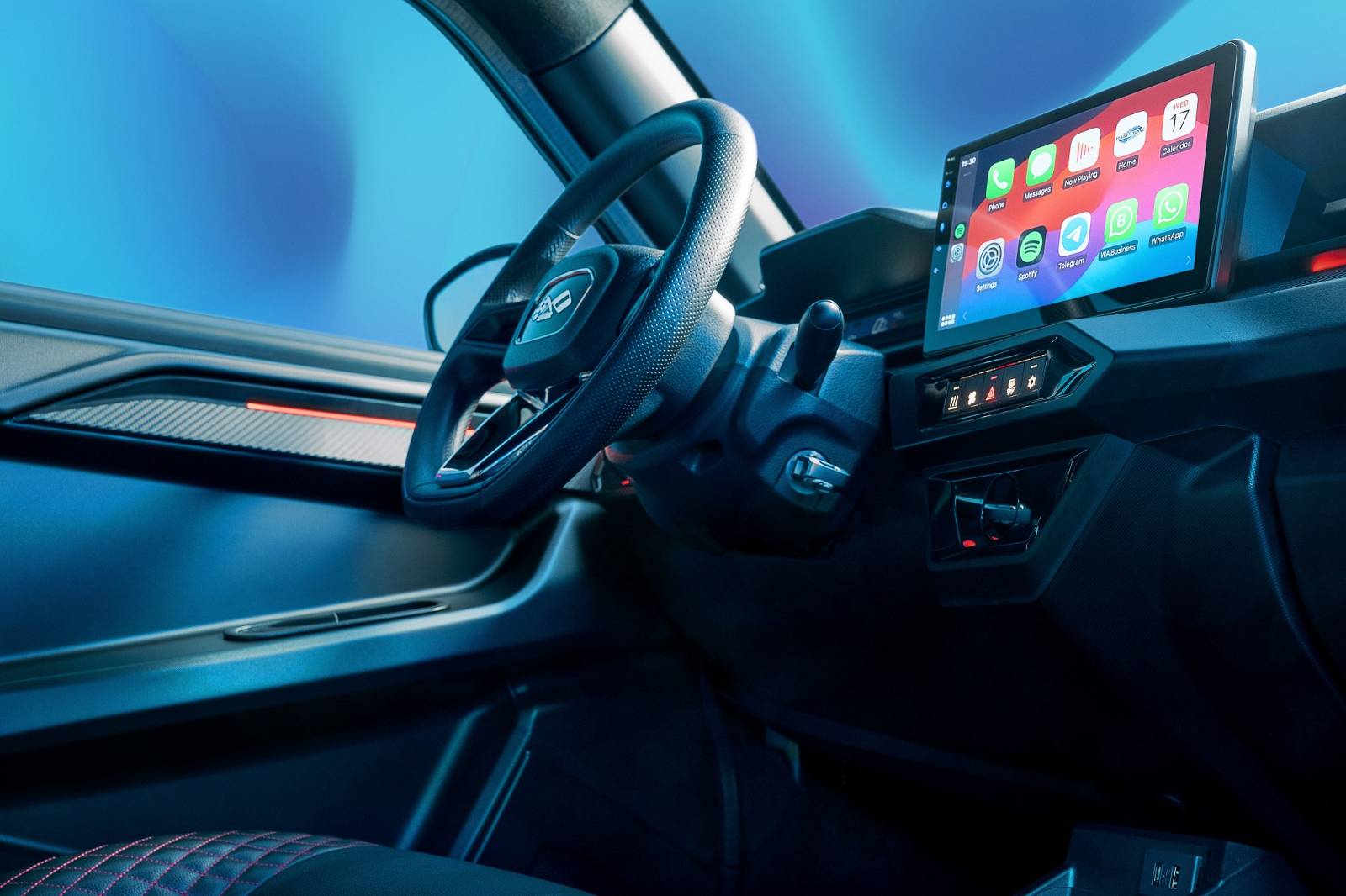 Elle est connectée. un grand écran tactile en position haute avec le Carplay mais aussi des prises USB et un chargeur à induction